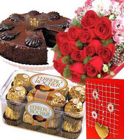love uA delightful living gift suitable for any occasion 16 pieces ferrero chocolate feelings with chocolate cake & 12 red roses bunch type express your love, a perfect gift to express your emotions.