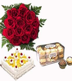 WonderfulMocha cake,1 dozen red roses bouquet and 16 pieces ferrero rocker chocolates for your loveone.