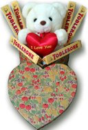 Sweet Heart :)Cuddly Bear, I love pillow and 300 grm Toblerone in Heart shape box.