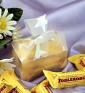 Toblerone BoxSilver Stars Bow Box with Honey and Almond Nougat Toblerone 30 pieces Mini Bars, makes adorable party gift.