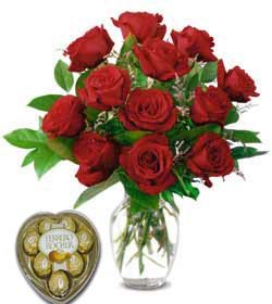 1 Dozen Rose Vase With Ferrero Heart