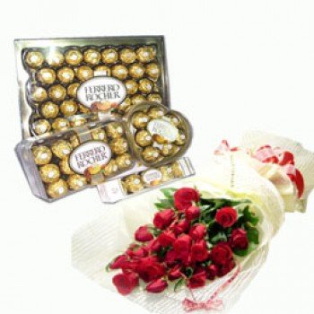 Big loveA Ferrero Rocher Set(46 pcs, 30pcs, 5 pcs & Heart-Shape with 1 dozen Red Roses )