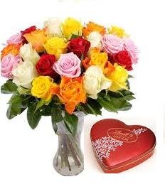 Multicolored Roses / lindt heart24 Multicolored Roses / lindt heart box red pink orange pomelo peach yellow