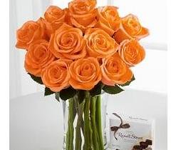 Orange Rose Bouquet with 200 g ritter sports12 Stems - Autumn Brilliance Orange Rose Bouquet with 200 g ritter sports Chocolates -