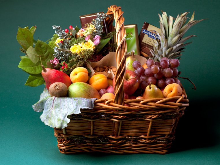 Fruit HamperExpress your deepest condolences with a gift of comforting nourishment. 6 items fresh fruit, nuts, lindt chocolate,vochelle chocolate box and flowers.