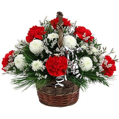 Lovely Carnations for DadGive a lovely surprise to your lovable Dad by sending this special floral arrangement of 12 red Color Carnation with mix flower Basket Arrangement.