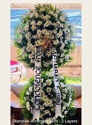 TributeLuxurious garden style funeral basket, arranged with artistic groupings of roses, lilies, Gerbera daisies, agapanthus, larkspurs and more. Truly a tasteful gift that is perfectly suited for the funeral home or service.