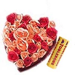Feeling Soooo Blue...Let your sweetheart/ spouse/ loved ones know how much you miss 'em. (24 Orange & 12 red roses with tobleron (6 x 50gm) chocolate.)