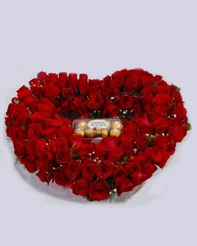 Sweet HeartLovely arrangement of 60 Red roses with a 16P Ferrero Rocher in the Center truly Sweet Heart…...........