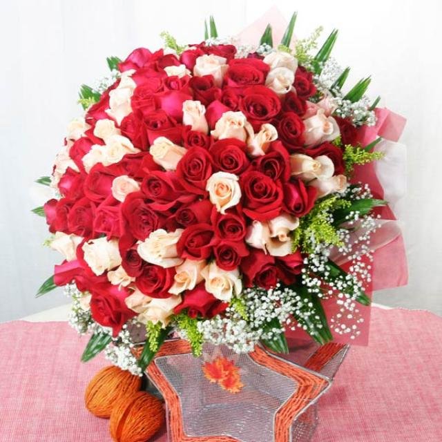 99 Roses ( 50 Red 49 white ) Handbouquet