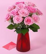 For A Beautiful Day !Wish your friend/ loved one a bright day with this beautiful 12 pink roses in a glass vase.