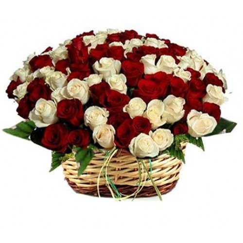 2 dozen garden spray roses24 stems of garden spray roses arranged in basket surrounded with leather lives. The stems are short to make the flowers last longer. It is an expression of friendliness and love.