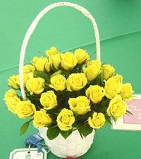 2 Dozens Roses BasketRoses are like the ponies of the rose world; smaller but just as beautiful if not more lovable. Considered "cute" roses, this large arrangement comes with 24 yellow roses. Placed into a large basket and blended with assorted greenery, this combination makes for the perfect gift on anniversaries or as a friendship gift.